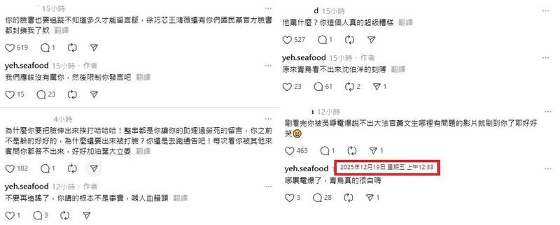 沈伯洋推薦葉元之當「勞動部長」顯然觸動了葉元之的敏感神經。不過,沈伯洋僅冷冷回應:「他幫勞動局拍過廣告,說他專長,怎麼變罵人呢?」另外,沈伯洋已多次澄清,他的Threads曾被中國網軍攻擊,因此早就限制未追蹤者無法留言。