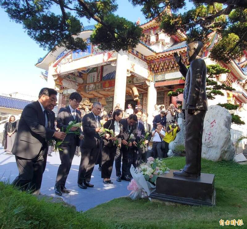 自民黨代理幹事長向安倍晉三銅像獻花致意 盼台日友情持續更強韌