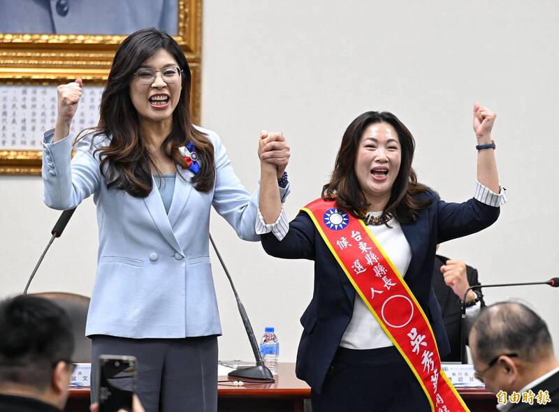 國民黨主席鄭麗文在中常會宣布徵召吳秀華(右)參選台東縣長。(記者張嘉明攝)