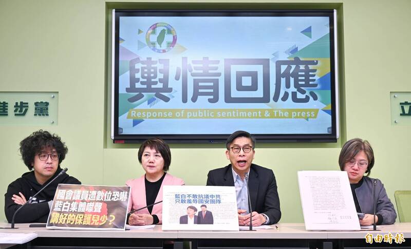 民進黨立院黨團召開「助中共打壓自家人,國眾到底哪國人?」記者會。(記者方賓照攝)
