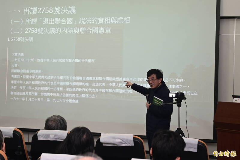 薛化元指出,要解析2758號決議不能只讀決議本身,這份決議本身沒有講到台灣、也沒有講到中華民國;關鍵問題在於,當時中華人民共和國(PRC)並沒有申請加入聯合國,而是主張成為中華民國(ROC)那個席位的代表,所以ROC既不會被踢出聯合國,也不能承認ROC退出。