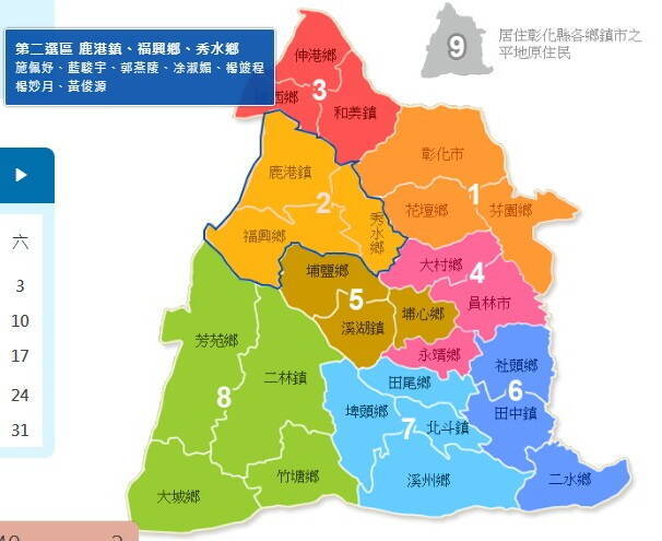 彰化縣全部選區中,已有4個選區的縣議員,表態投入鄉鎮市長選舉,第2選區的人數最多,有4人有意擴大政治舞台,轉戰鄉鎮長。(圖擷取議會官網)