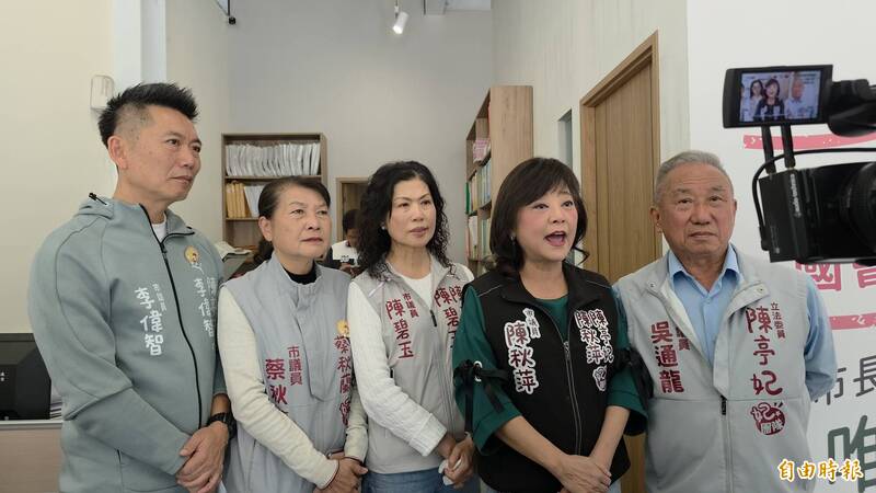 立委陳亭妃(左4)偕同相挺市議員高喊加油當選。(記者洪瑞琴攝)