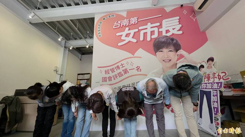 立委陳亭妃率團隊感謝鄉親支持,鞠躬致謝。(記者洪瑞琴攝)