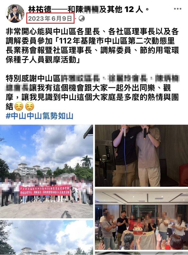 林祐德被控為教育部專案約聘雇人員,卻以市長秘書身分參加里、鄰長活動,並公布於個人臉書專頁上張貼。(翻攝自臉書)