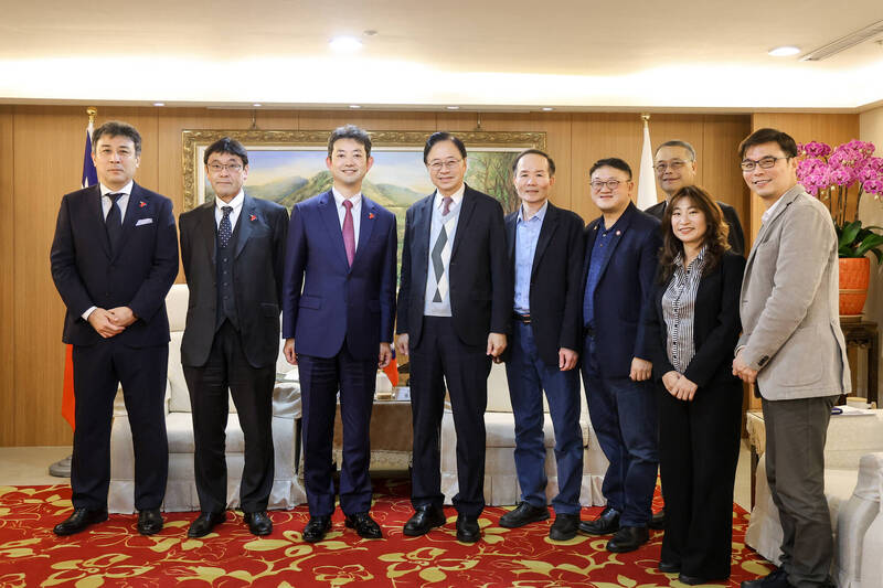 桃園市長張善政(左四)19日會見日本千葉縣知事熊谷俊人(左三)一行。(桃市府提供)