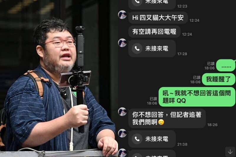 四叉貓秀出陳智菡奪命連環call的對話紀錄。(擷取自「劉宇」臉書/本報合成)