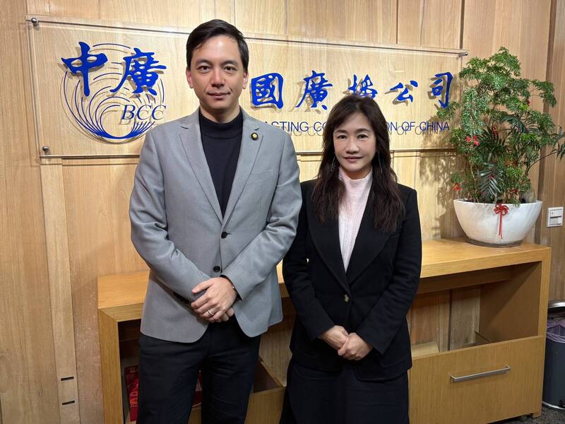 國民黨發言人牛煦庭(左)接受中廣「千秋萬事」節目訪問。(圖由中廣節目「千秋萬事」提供)