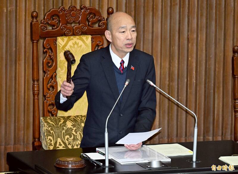 農民退休儲金條例修正草案三讀通過,立法院長韓國瑜敲下議事槌。(記者廖振輝攝)