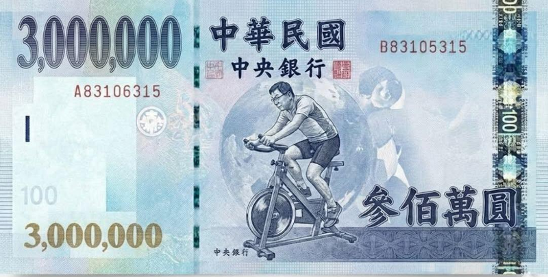 央行官網近日設立「台灣之美系列鈔券面額主題票選活動專區」,有12項面額主題供民眾票選,2月13日下午5點截止。不過有網友忍不住開起最愛「自提版本」的民眾黨玩笑,設計一款最「清廉」的鈔票,主角放上「踩飛輪的阿北」,面額為300萬,狠酸前民眾黨主席柯文哲被指控過去在台北市長辦公室收博奕教父陳盈助委由機要邱清章送來300萬這件事。