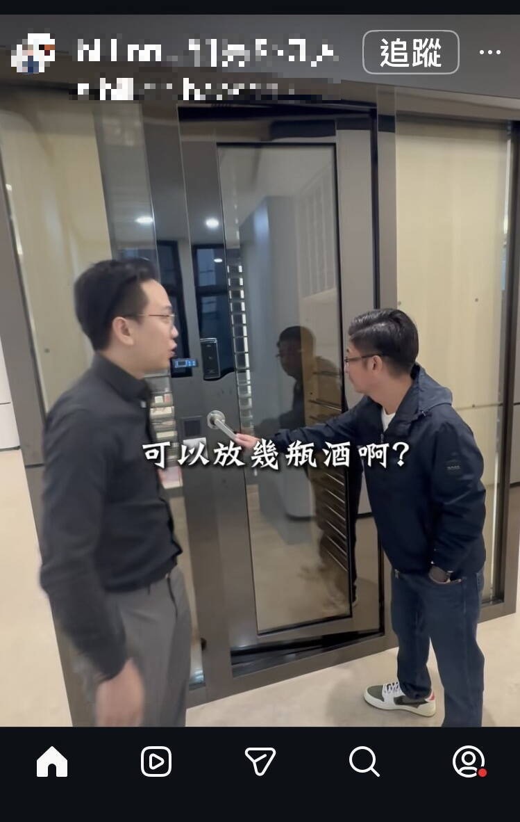 謝典霖溪州住家有可放300、400瓶的恆溫大酒櫃。(圖擷取網紅億百豪森影片) ☆飲酒過量 有害健康 禁止酒駕☆