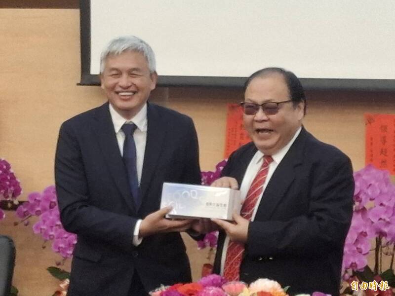 澎湖縣長陳光復參加澎科大校長就職典禮,再趕往台北接受連任提名。(記者劉禹慶攝)