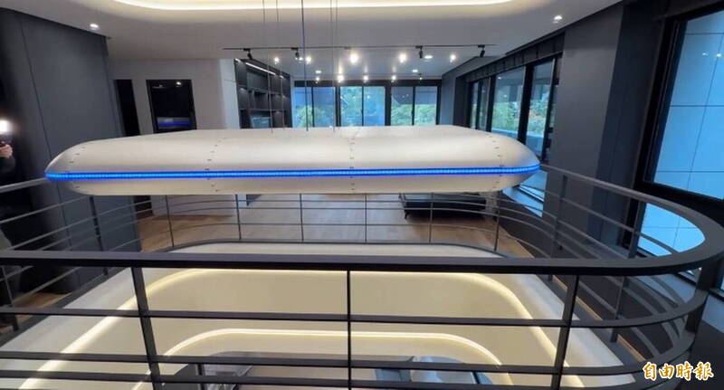 謝典霖新家如星艦的升降平台,上下飄浮移動,光源顏色隨著高度變化而不同。(記者顏宏駿攝)
