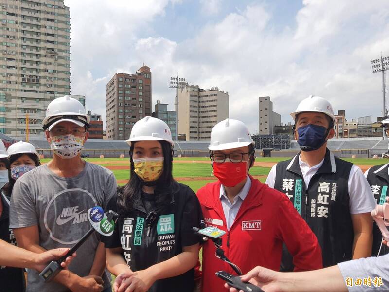 林琨瀚(左1)2022年與時任立委的高虹安會勘新竹棒球場。(資料照)