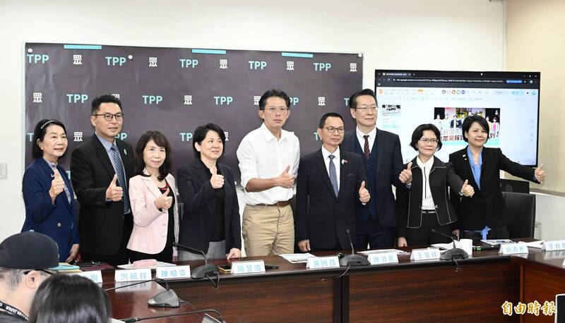 民眾黨立法院黨團召開「人民優先,民生優先」優先法案記者會,黨主席黃國昌(中)率新任立委出席。(記者羅沛德攝)