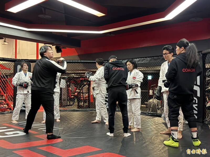 5位參選人今一早到大安區的健身房內,跟著專業教練練習柔術進行防身術訓練,後續並至八角籠擂台上進行全集訓練,在兩兩實戰練習環節時拳拳到肉,不因練習而划水。
