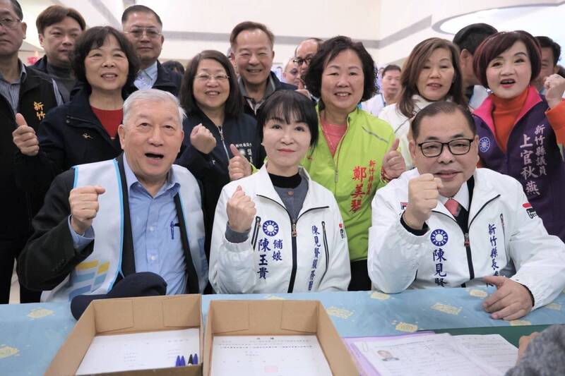 陳見賢(前排右)昨天登記國民黨新竹縣長選舉黨內初選。(陳見賢團隊提供)