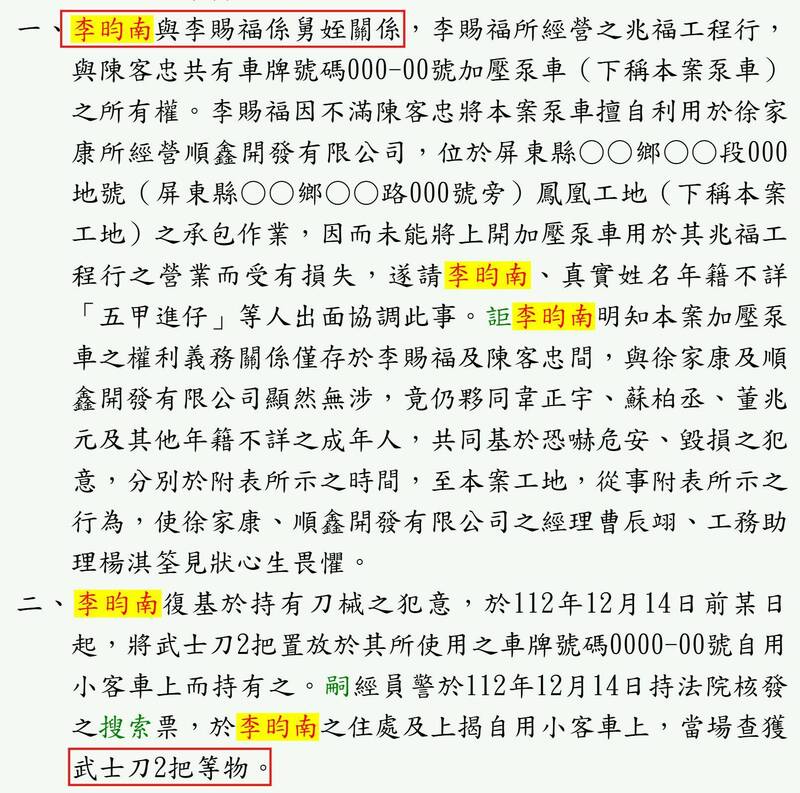 剛宣布要投入爭取參選新北市長的台北市副市長李四川,被指親弟李賜福等人勒索垃圾清運業者,不法獲利576萬元,已被檢方依恐嚇取財等罪起訴。對此,網紅「四叉貓」表示,李四川的惡霸親弟李賜福派了他姪子「李昀南」(所以也是李四川的姪子)去工地潑漆、放沖天炮、撒冥紙、破壞泵車管線、砸玻璃、塞雜物到油箱......等,李四川的姪子「李昀南」甚至被查獲車子裡放有兩把武士刀。