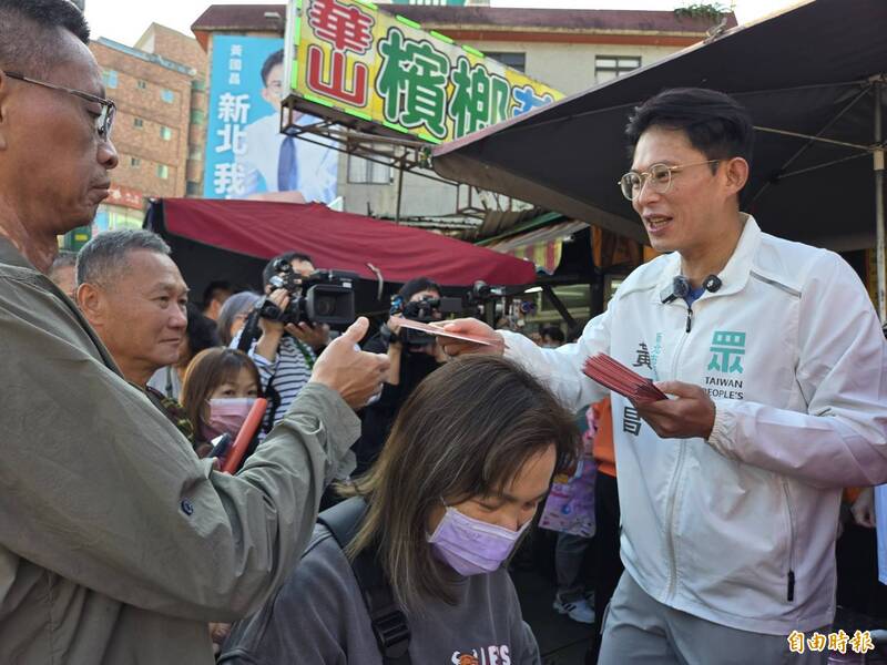 民眾黨新北市長參選人黃國昌今天到林口市場掃街拜票。(記者賴筱桐攝)