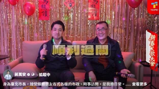 蔣萬安在李四川宣布辭職的臉書貼文下留言「開放大家點歌」,他會在過年時間好好練歌,不少網友為他選歌。蔣萬安歌單今天在個人社群揭曉,包括「甲你攬牢牢」、「我願意」、「愛拚才會贏」、「告白氣球」等,李四川也唱了台語的「海波浪」, 兩人的互動相當有趣,蔣萬安難得公開展現活潑、動感的一面。