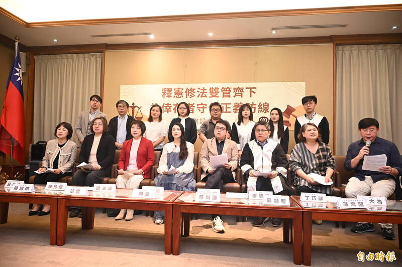 台灣光寰協會、公民監督國會聯盟今天上午在立法院召開「釋憲修法雙管齊下為倖存者守住正義防線連署開跑記者會」,呼籲釋憲修法雙管齊下,為倖存者守住正義防線。(記者王藝菘攝)
