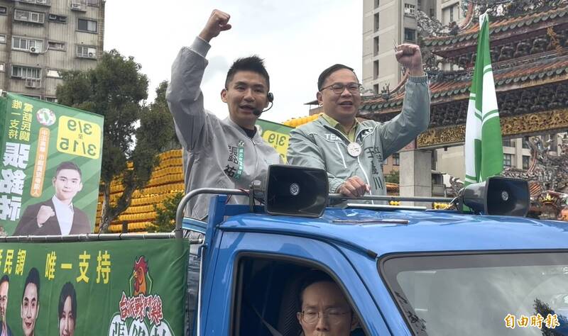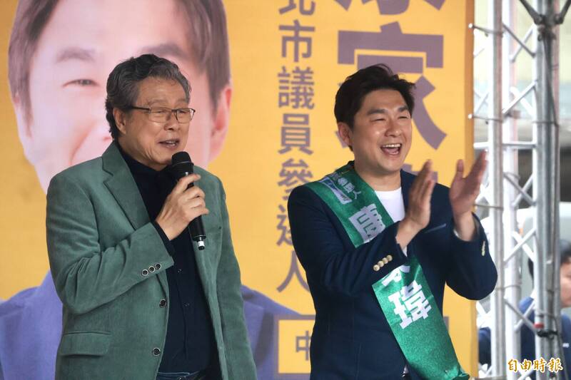 楊烈(左)幫康家瑋(右)站台。(記者董冠怡攝)