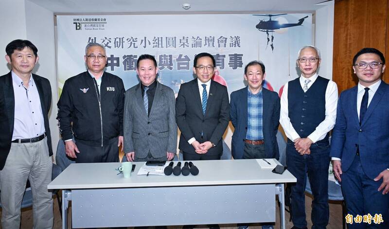 新台灣國策智庫外交研究小組今舉辦「日中衝突與台灣有事」圓桌會議。左1為淡江大學兼任教授荊元宙。(記者方賓照攝)