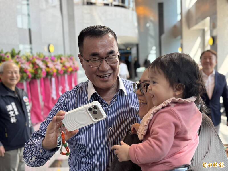 國民黨新北市長參選人李四川出席新北市土木技師公會會員大會,與民眾自拍。(記者羅國嘉攝)