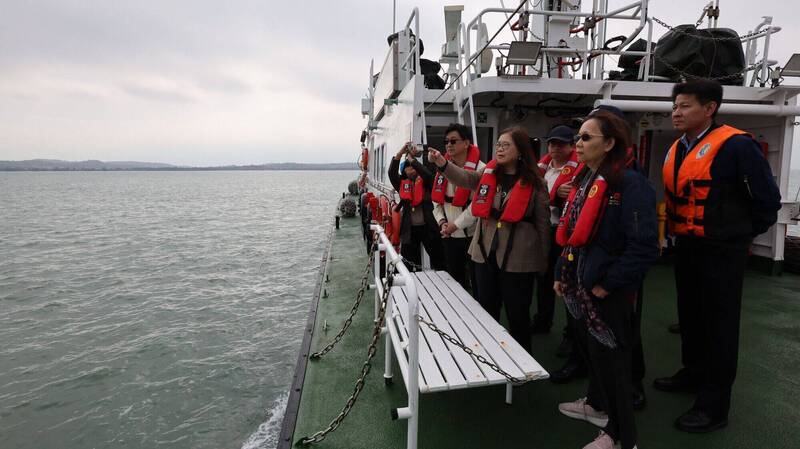 海委會主委管碧玲(右三)搭金門海巡船艇出海巡察。(海洋委員會提供)