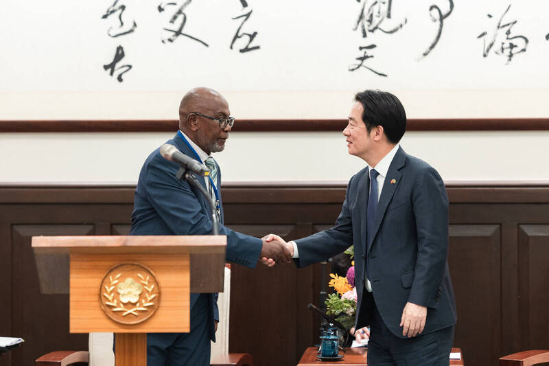 總統賴清德今接見聖文森及格瑞那丁副總理暨國家安全、災害管理及移民部長李考克(St. Claire Leacock)伉儷一行時表示,今年是台灣與聖文森國建交45週年,雙方始終風雨同舟、真誠相伴,期待在新政府的支持之下,持續拓展兩國邦誼的深度和廣度;李考克也回應,台灣在促進人類福祉及維護全球和平與安全具有具體及重要的貢獻,聖國也將持續在國際場域與台灣並肩同行。