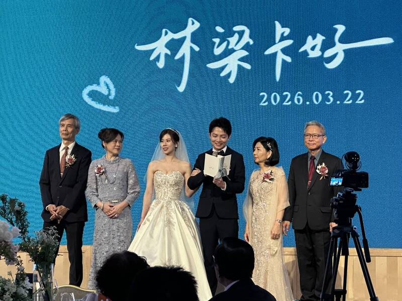 林楷軒指出,站在舞台上感覺比議會備詢還緊張,並把握機會向市長陳其邁爭取蜜月假;陳其邁笑說,會請衛生局長好好算一下,蜜月要有效,一年內需做人成功,市長的「蜜」令引來全場喝采。
