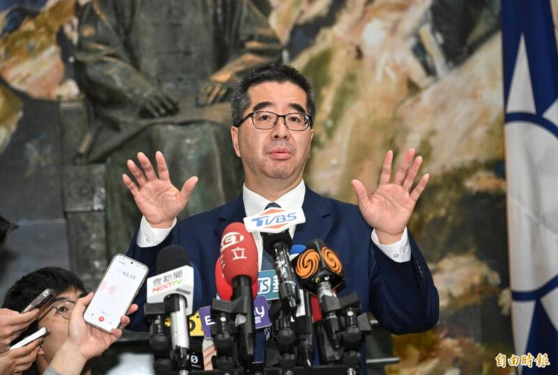 馬英九基金會前執行長、現任國民黨副主席蕭旭岑25日在國民黨中央黨部召開記者會,語帶哽咽表示很遺憾也很難過要走到今天這一步。(記者張嘉明攝)