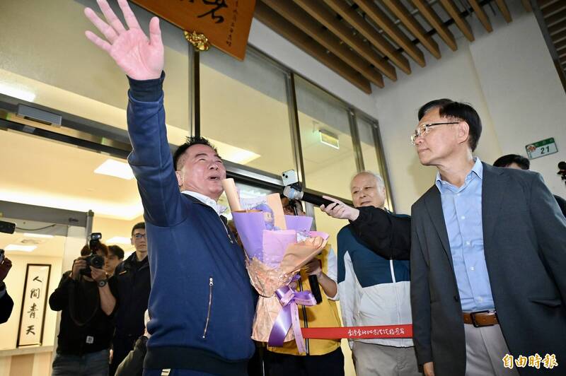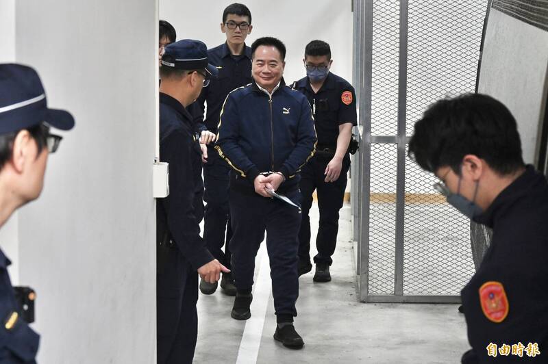 蔡正元笑容滿面地搭乘囚車解送至台北監獄執行徒刑。(記者叢昌瑾攝)