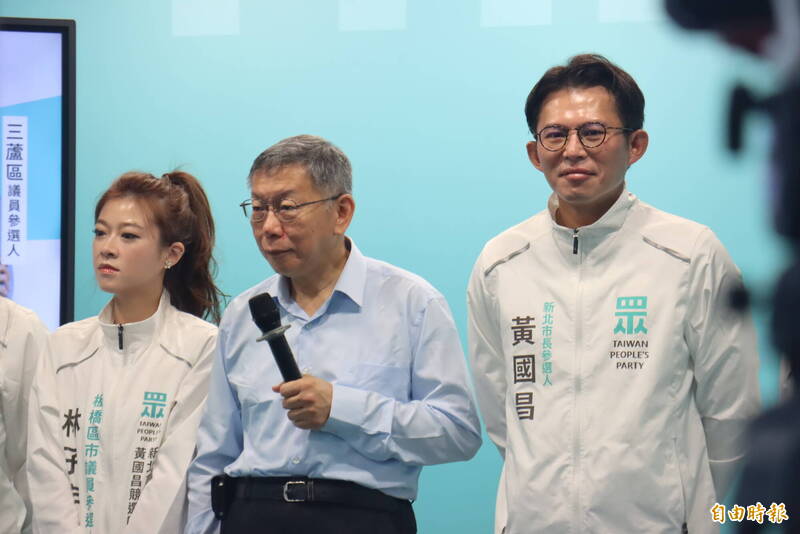 民眾黨前主席柯文哲(中)被問到立委李貞秀的表現,他表示席希望大家再給她一點時間。(記者翁聿煌攝)