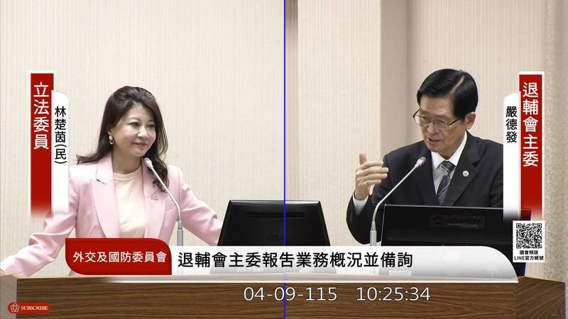 民進黨立委林楚茵踢爆退輔會轉投資的欣欣、大南客運公車竟違約使用中國晶片,退輔會主委嚴德發表示已成立專案小組全面追查。(圖取自國會頻道)