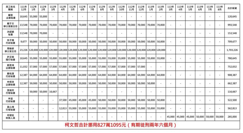 判決書載明柯文哲挪用公款當競總員工薪水!四叉貓列13人薪資表