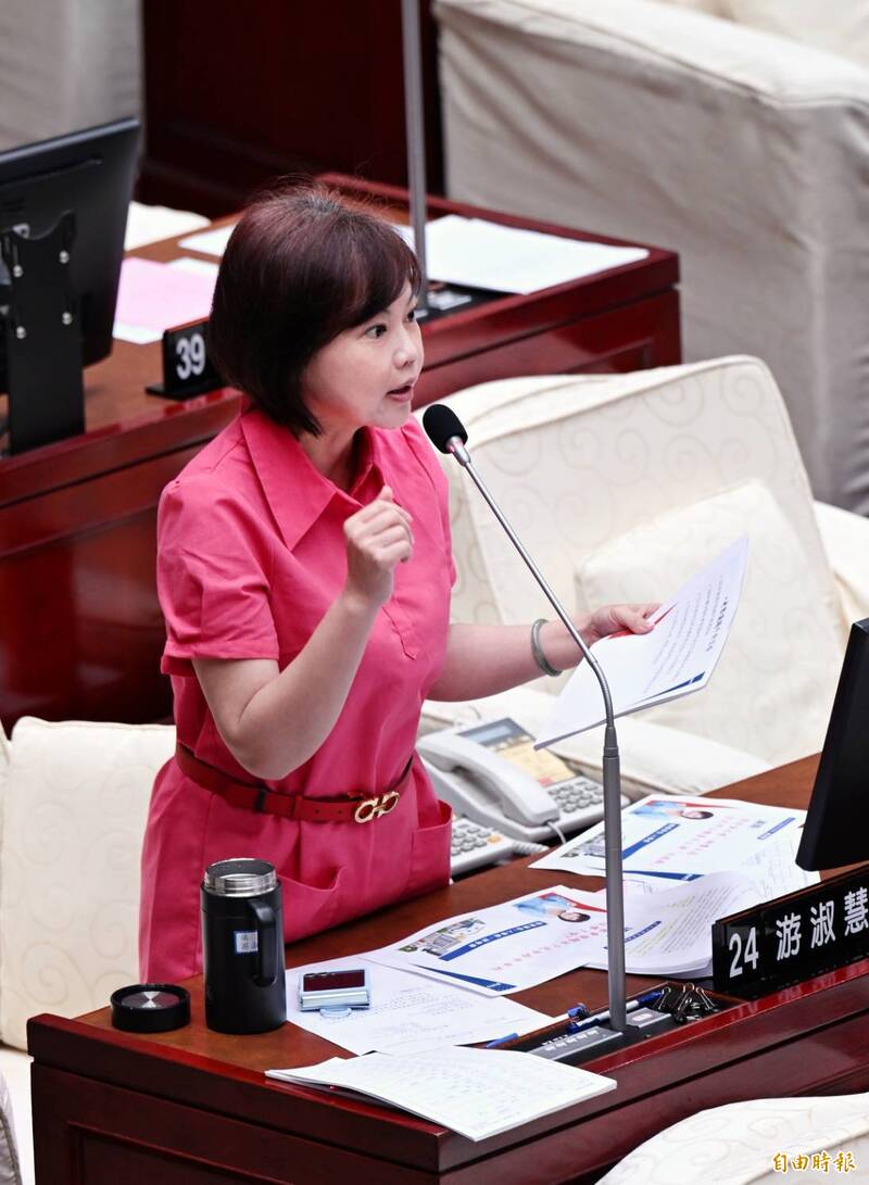 台北市議員游淑慧質疑北市府赴日考察名目林林總總、千奇百怪。(記者方賓照攝)