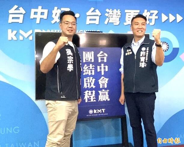 國民黨北屯區市議員將提名新人(左起)吳宗學、許育璿。(記者黃旭磊攝)