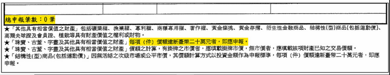 但四叉貓又加碼翻出陳智菡的財產申報資料,「陳智菡被列為民眾黨不分區第19名立委,依法被列入名單之後就要進行財產申報,根據規定超過20萬以上的黃金、珠寶都必須申報,理論上價值27萬元的卡地亞手環應該要申報,但為什麼陳智菡的珠寶申報這一欄是0筆呢?智菡姊姊應該不會買A仿貨吧!」