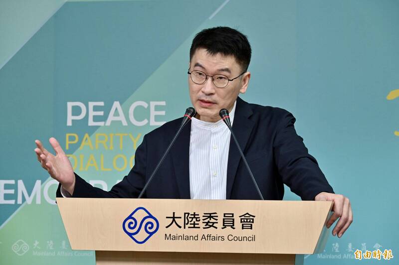 陸委會發言人梁文傑今天表示,中共實際立場就是這樣,不承認中華民國存在、中華民國沒有總統,「我是勸國內一些政治人物,不要再對中共對台政策有什麼幻想」。(記者陳鈺馥攝)