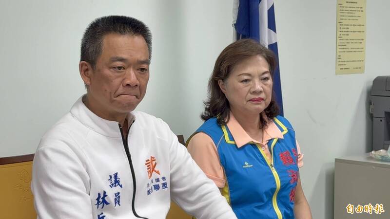 雲林縣議員林岳璋(左起)表態支持賴淑娞參選斗六市長。(檔案照,記者李文德攝)