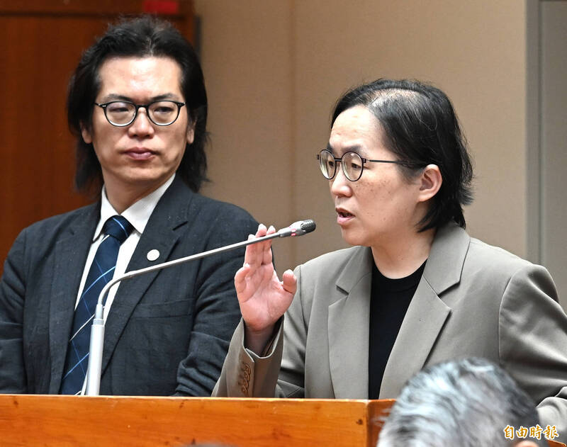 數發部政務次長侯宜芳(右)、國科會副主委陳炳宇(左)到立法院教育委員會備詢。(記者王藝菘攝)