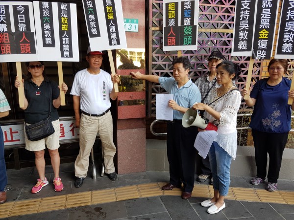 「反人頭綁樁行動聯盟」控告新北市議長蔣根煌涉妨害投票罪。(記者謝君臨攝)