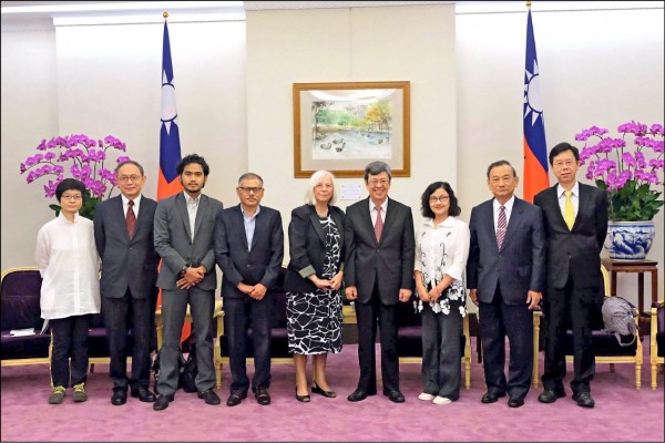 「亞洲人權發展論壇」Rosslyn Noonan等三位國際專家昨拜會副總統陳建仁(右四),協助評估台灣設立國家人權機構。(人權公約施行監督聯盟提供)