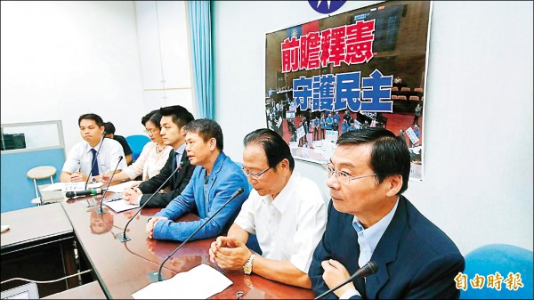 立法院國民黨團昨正式提出前瞻釋憲案,並強調國、親兩黨終於站在一起。(記者陳鈺馥攝)