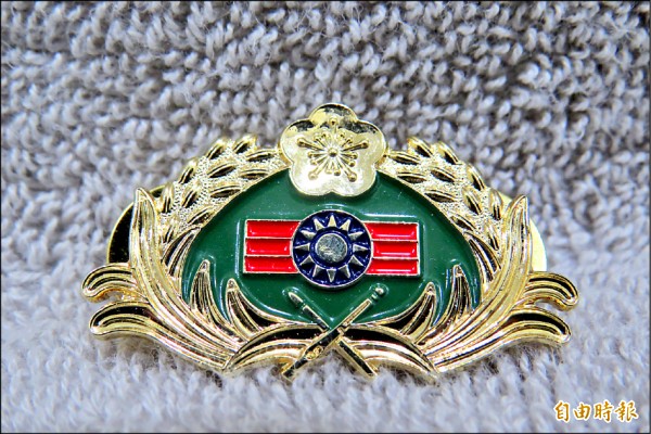 軍訓教官章外觀。清楚可見救國團團徽,內有中國國民黨黨徽。(記者陳鈺馥攝)