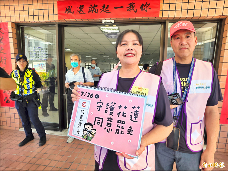 罷免傅崐萁領銜人李美玲說,傅崐萁在公辦電視罷免說明會答非所問,她一上台傅崐萁就中途離席,非常不尊重人。(記者花孟璟攝)
