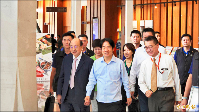賴清德總統在結束新竹市座談步出會場時,與柯建銘、黨秘書長徐國勇有說有笑,氣氛相當和諧。(記者蔡彰盛攝)