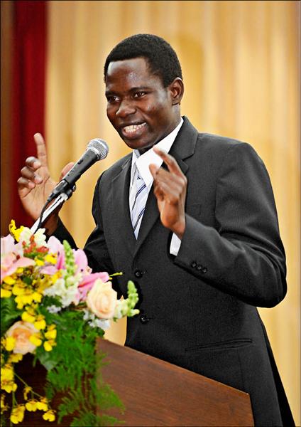 外交部昨舉行「非洲留華學生華語演講比賽」,來自布吉納法索的學生巴祐寧,以生動的口吻訴說來台租屋的經過,讓台下觀眾哈哈大笑。(記者劉信德攝)