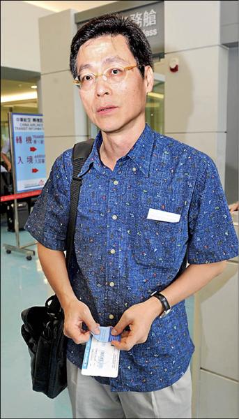 被立委指貪瀆、搞婚外情的我駐斐濟代表秦日新,昨搭機返回斐濟。(記者姚介修攝)